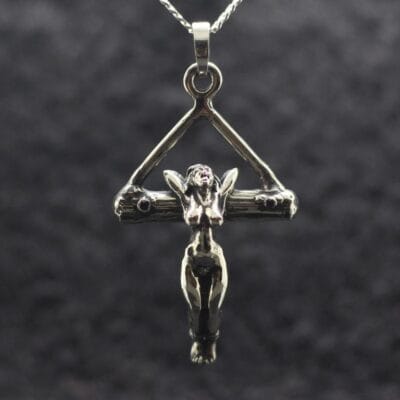Fantastically detailed naked girl on cross. Crucified naked woman on cross jewelry pendant. Kink erotic