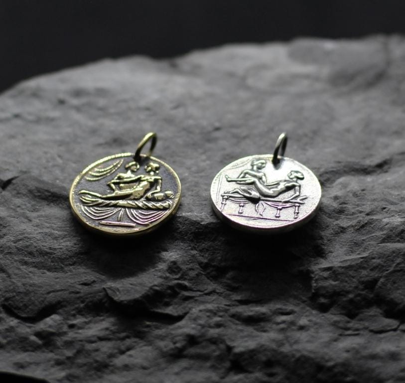 REPLICA of spintria – Roman Empire brothel tokens. ALL 16 TYPES of known coins. Brass or silver. Excellent made replica. Spintriae coins. CHAIN IS NOT INCLUDED!