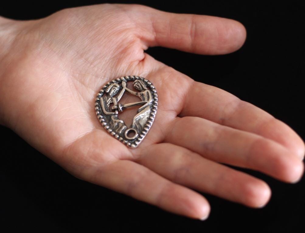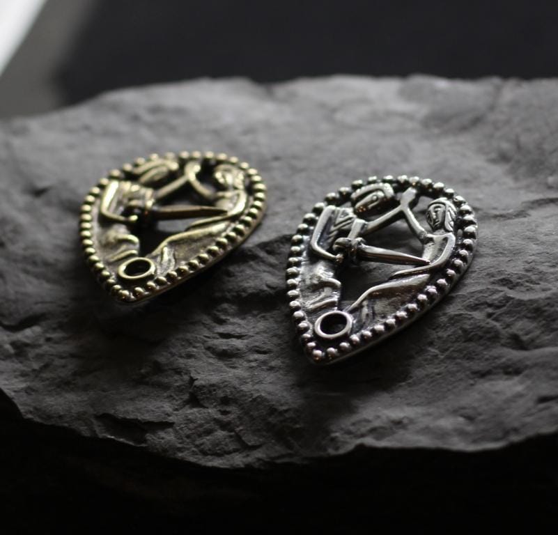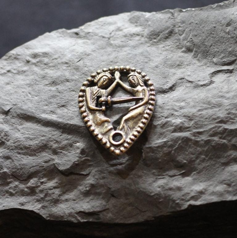 Tristan and Iseult Medieval Fibula Brooch can also be made in 585 gold.