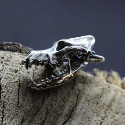 Anatomically accurate bear skull-pendant. In the history of culture of all peoples who lived next to bears, the strongest and most severe predators of the north, there are various beliefs associated with it. This is the “master of the taiga” among the northern peoples of Russia, or the «king of animals» among the American Indians, and even the embodiment of one of the incarnations of the god Odin – in Scandinavia. The symbolism of the bear is so extensive, from negative constellations such as gluttony, greed and vengefulness to the symbolism of kindness, tender maternal feelings, courage and greatness. It is useless to describe the versatility of the symbolism of this animal. Let everyone choose for himself which of the poles of characteristics is closer to him. But you never wish anyone to ever meet a hungry bear in the forest when you don’t have a gun … But, may be, this pendant will be strong talisman from bear? Or will give you the force and mighty power of this animal? May be, who knows? Very anatomically accurate skull-pendant.
