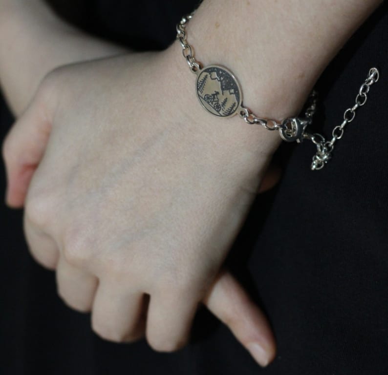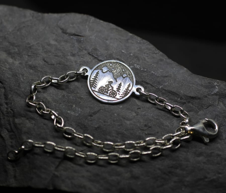 Bike and mountain view silver chain bracelet
