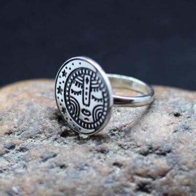 Moon sun tribal pendant. Star crescent symbol. The moon and the sun are the first mythological heroes of human culture. Just because they are so obvious every day of its existence, because every day the sun rises and every day the moon comes out. This inseparable pair, both together and separately, first appeared in the human pantheon of gods many thousands of years ago. Therefore, this is exactly how, symbolically, we decided to portray them. Without excessive naturalism, closer to the Aztecs. The change of day and night, as an eternally running symbol of life and symbolic death, is present next to a person every day. A symbol of constancy and confidence that after the night light of the moon, the sun will rise and all fears will go away, but after all, a sunny day is also short-lived like night. Close to the tribal image of the moon and the sun – a reminder of the eternal changeability but also the eternal constancy of nature. It is possible to customize with a decrease or increase size by make to order request.